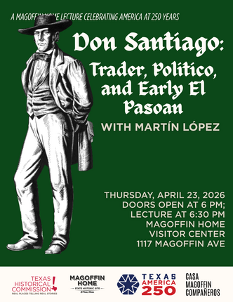 Join Magoffin Home educator, Martín López, for an evening dive into the life of James Wiley “Don Santiago” Magoffin, a 19th-century borderlands merchant, political powerbroker, and cultural connector whose story shaped El Paso long before Texas knew what to do with him. This engaging, media-rich lecture brings his world to life with rare images, maps, and letters from the Magoffin Home archives. Discover how one man’s trade routes, family ties, and frontier diplomacy helped stitch together a region—and left a legacy still felt today.